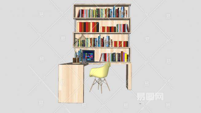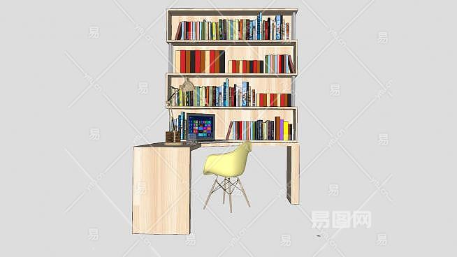书桌书架组合SU模型下载_sketchup草图大师SKP模型