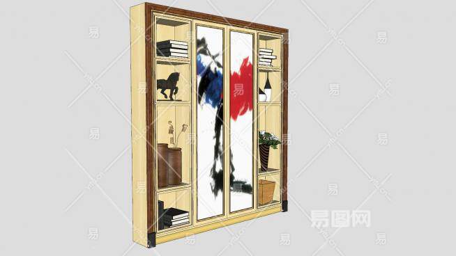 书柜书架上的工艺品SU模型下载_sketchup草图大师SKP模型