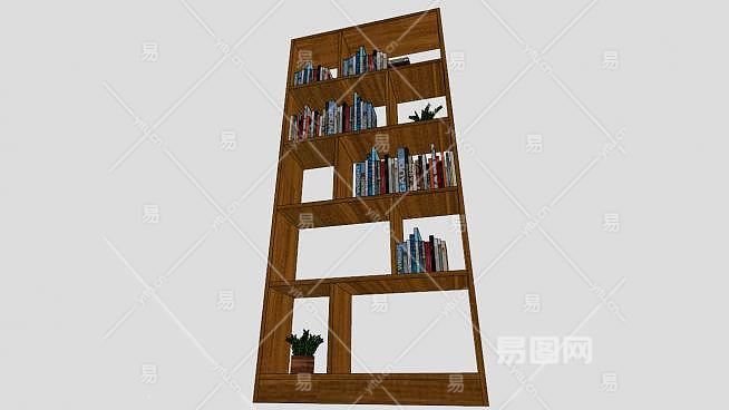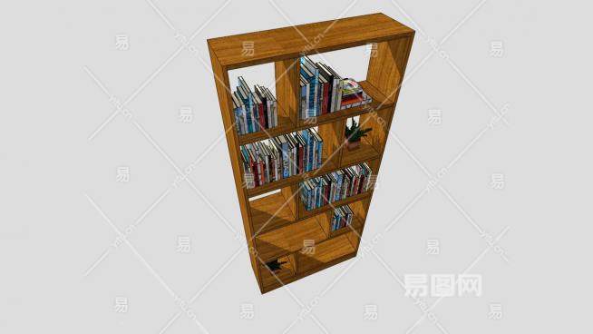 现代隔板式壁柜书柜SU模型下载_sketchup草图大师SKP模型