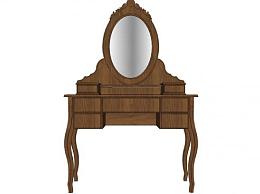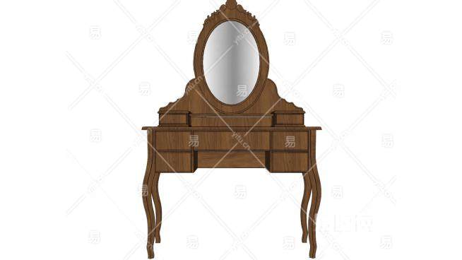 古典的木制梳妆台带镜子SU模型下载_sketchup草图大师SKP模型