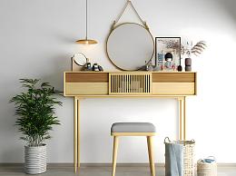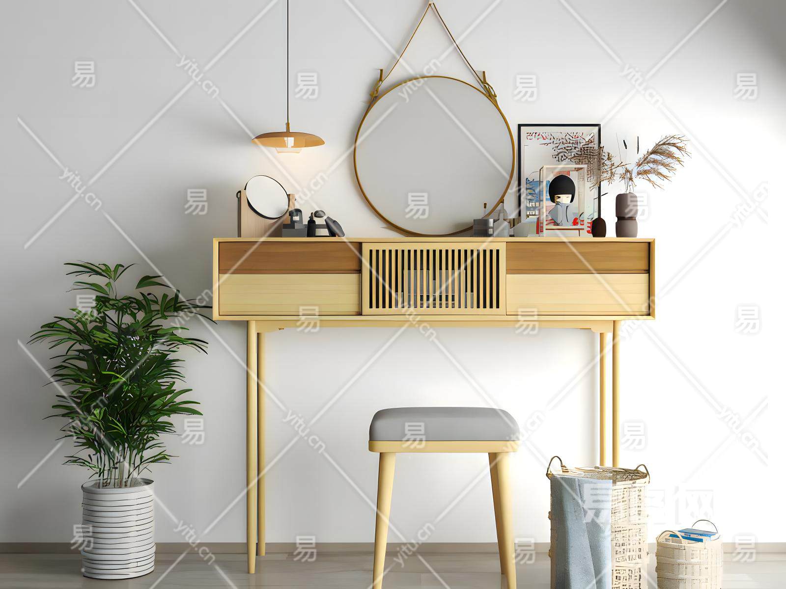 日式风格梳妆台梳妆镜子盆栽