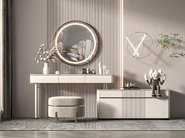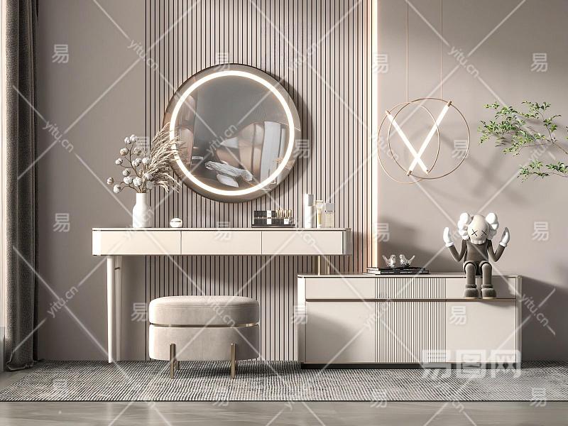 现代轻奢梳妆台 吊灯 化妆品 摆件