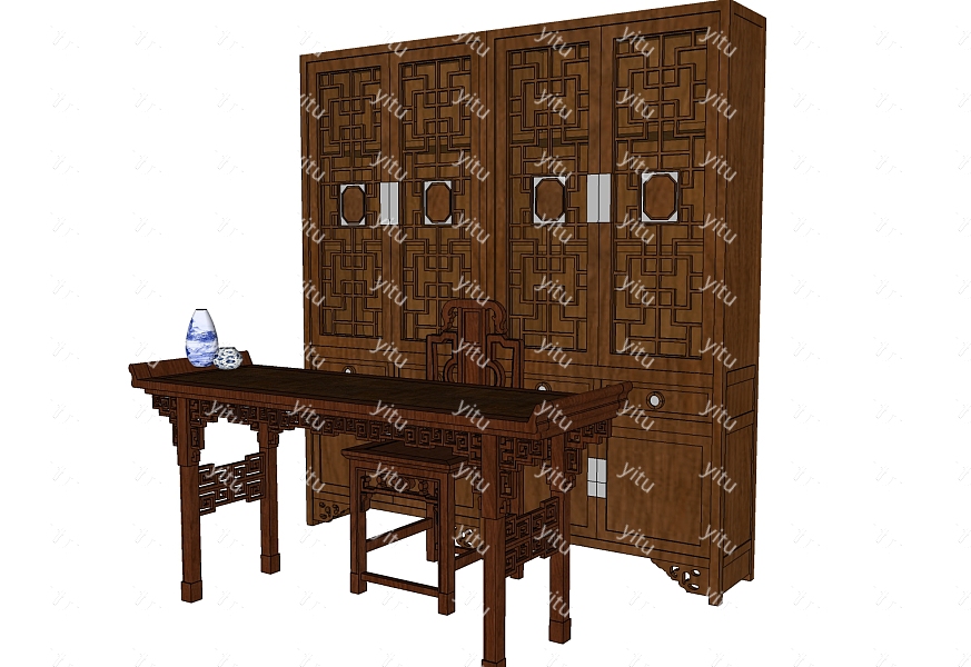 当前的位置:首页 > sketchup > sketchup模型 > 桌几 > 书桌 > 中式实木书桌免费su模型,,实木书桌sketchup模型下载
