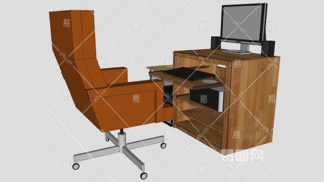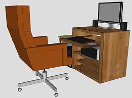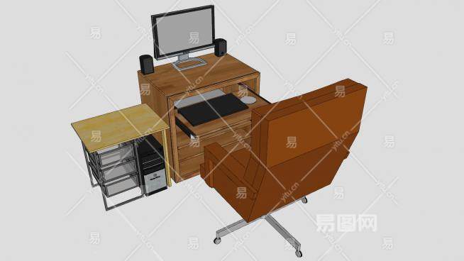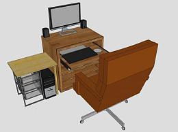 木制电脑桌和主机箱SU模型下载_sketchup草图大师SKP模型