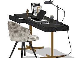 minotti 现代书桌椅 su草图模型下载