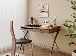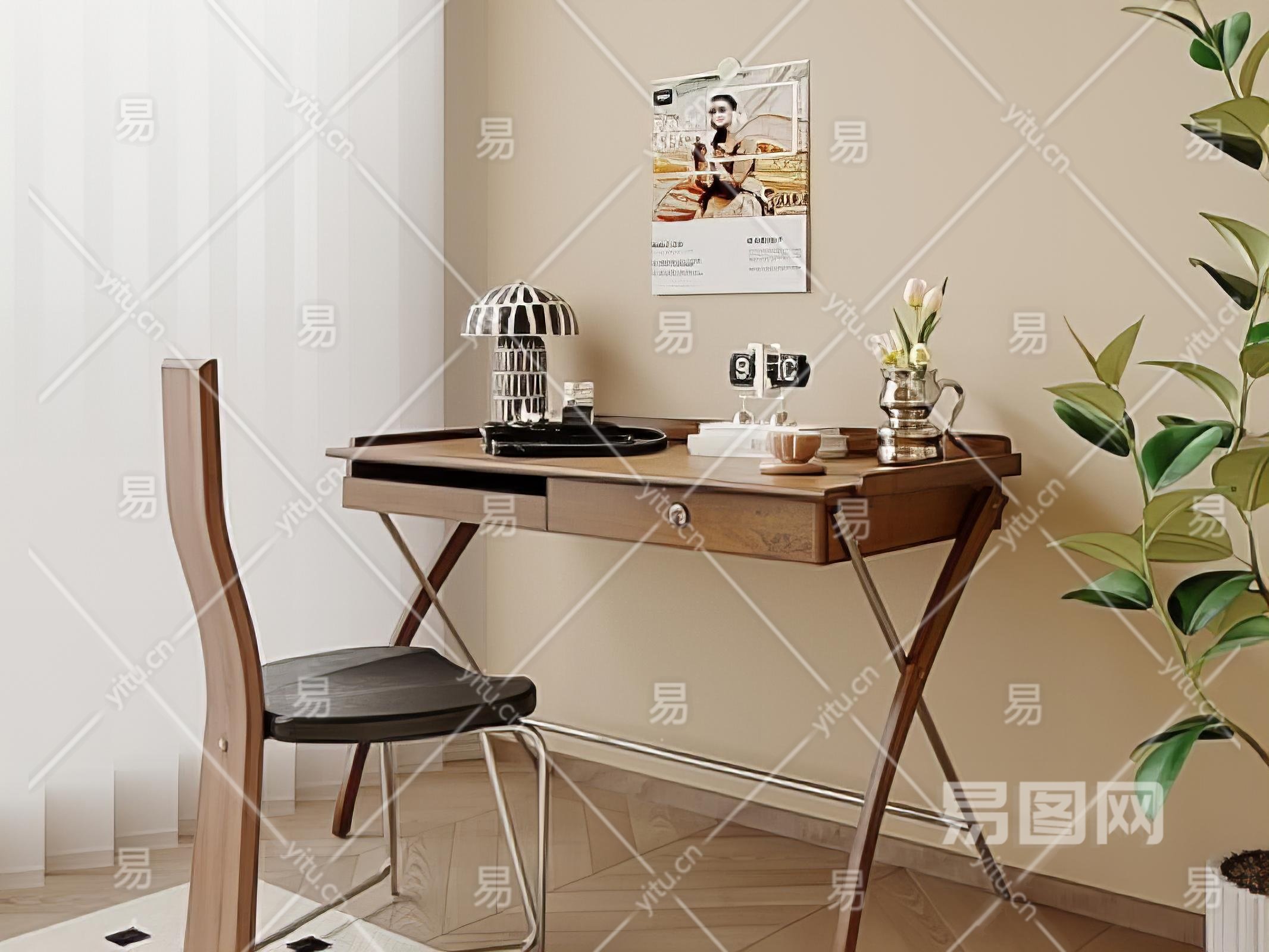 现代中古风书桌椅组合 台灯 时钟 休闲椅
