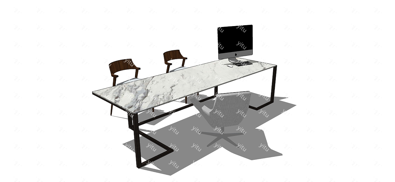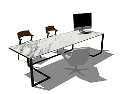 现代书桌草图大师模型下载、现代书桌su模型下载