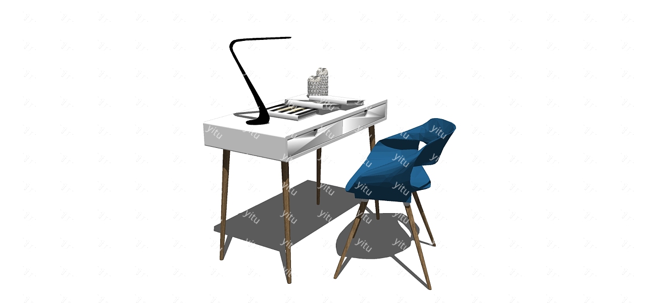 现代书桌草图大师模型下载、现代书桌su模型下载