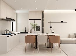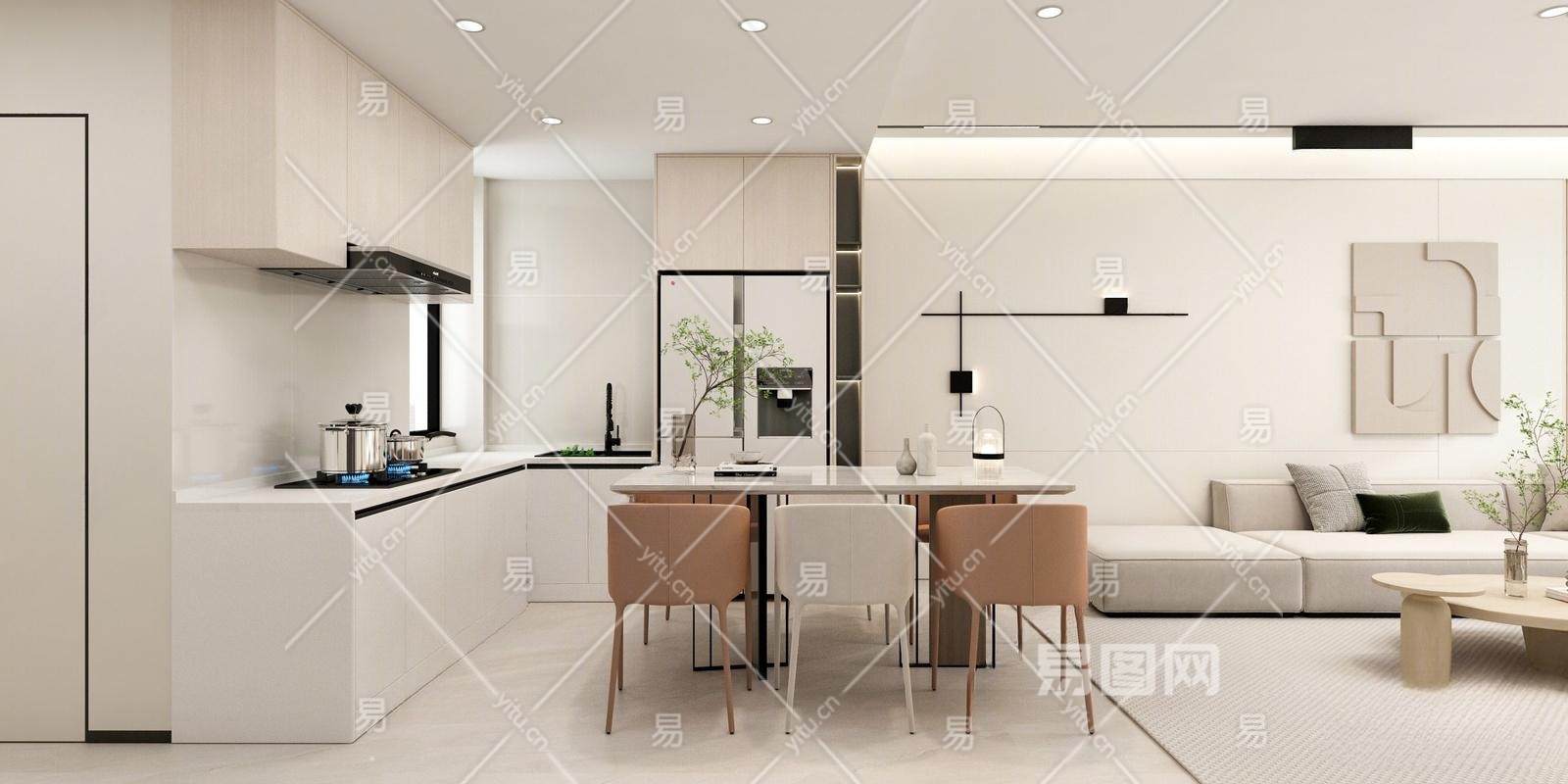 现代单身公寓 开放式厨房 沙发茶几组合 沙发背景墙 餐桌椅组合