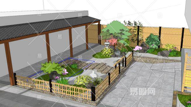 日式庭院景观花园SU模型下载_sketchup草图大师SKP模型