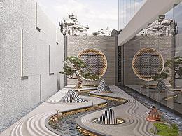 新中式庭院花园 样板房中庭景观 酒店屋顶阳台 禅意民宿别墅 枯山水景墙