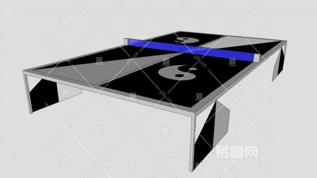 黑灰乒乓球桌SU模型下载_sketchup草图大师SKP模型