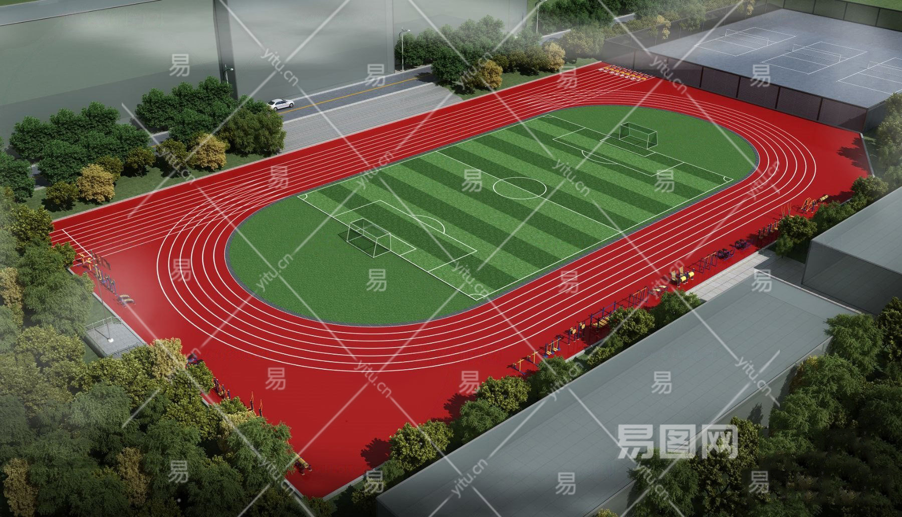 现代学校操场跑道.足球场鸟瞰su草图模型下载