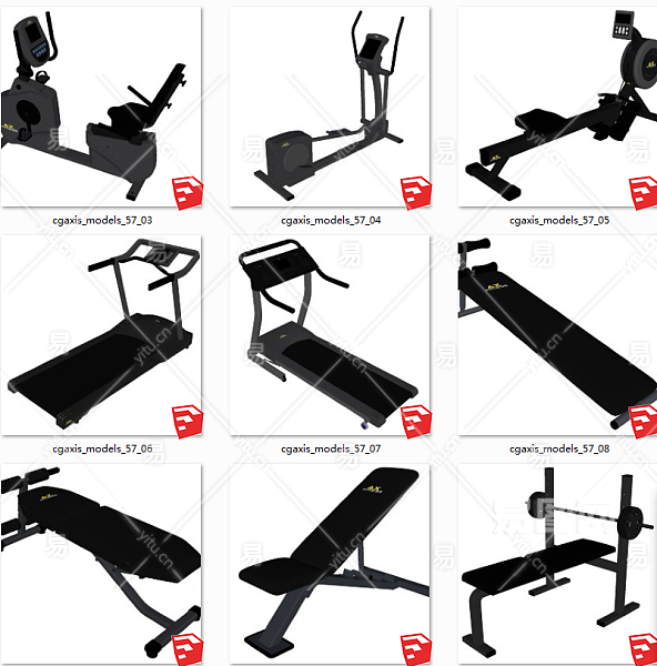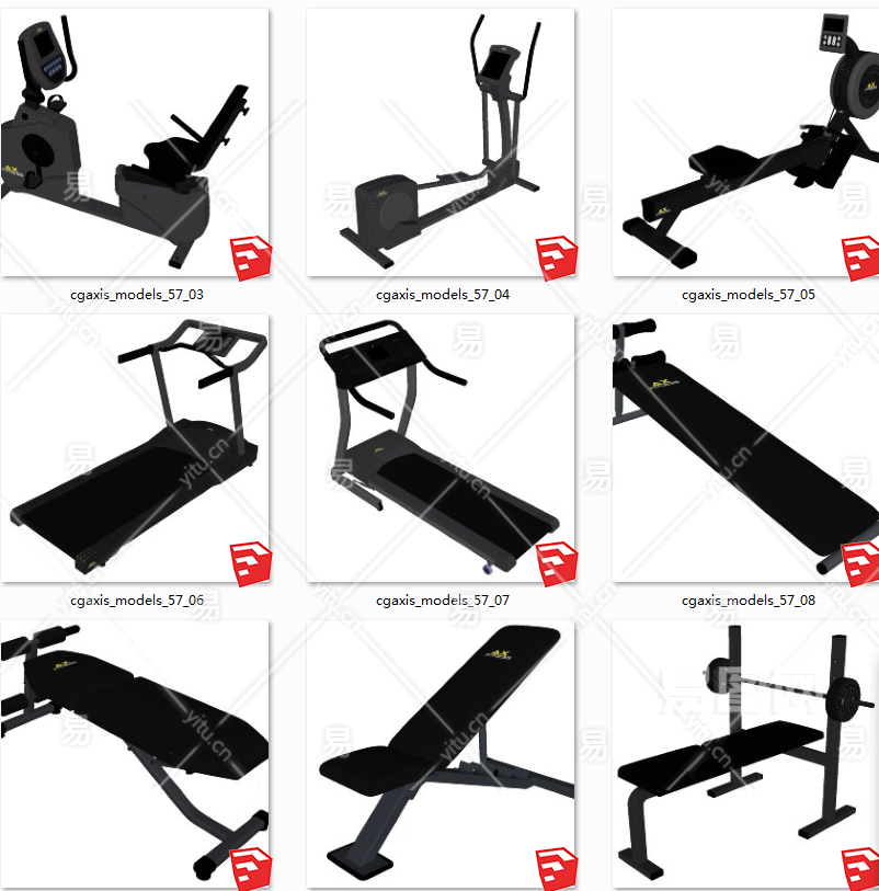 室内休闲器材 现代健身房健身器材 su草图模型下载