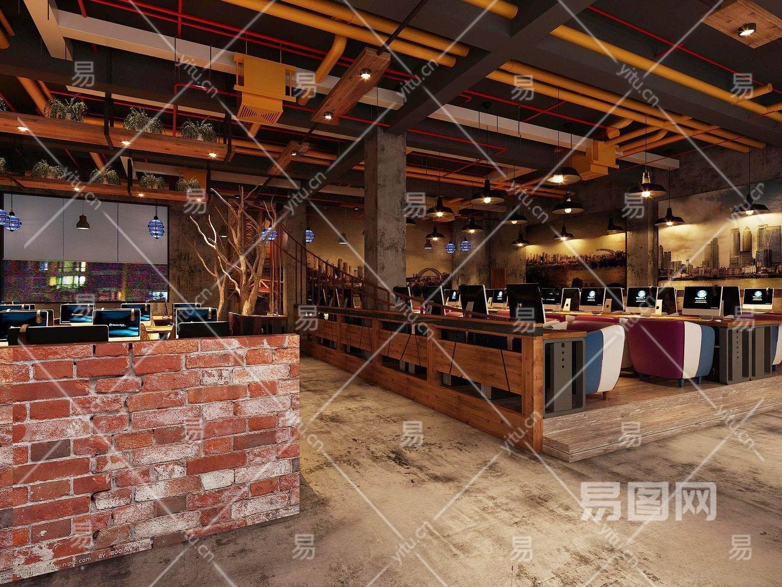 工业风格网咖 网吧 网吧电脑桌椅 娱乐场所 电竞椅