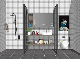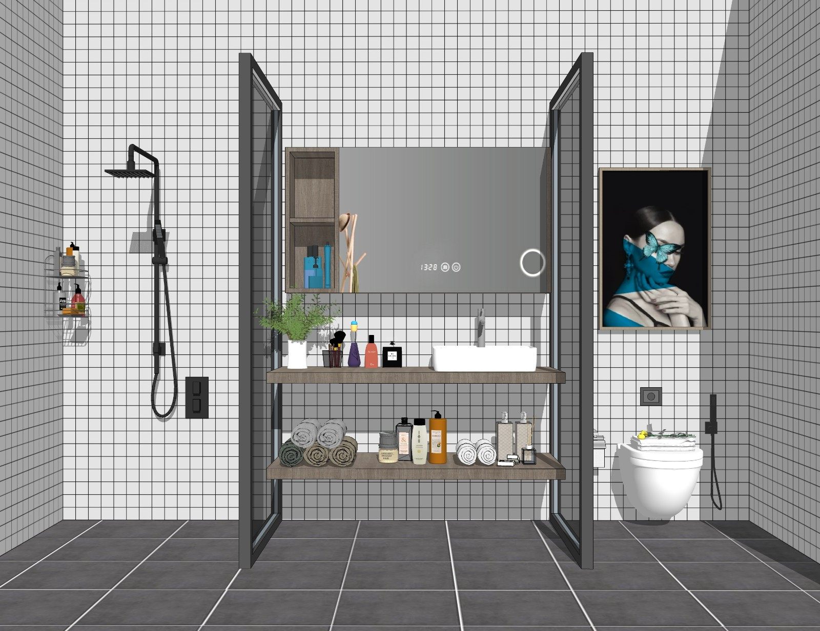 精品现代家居卫生间马桶淋浴组合su模型下载