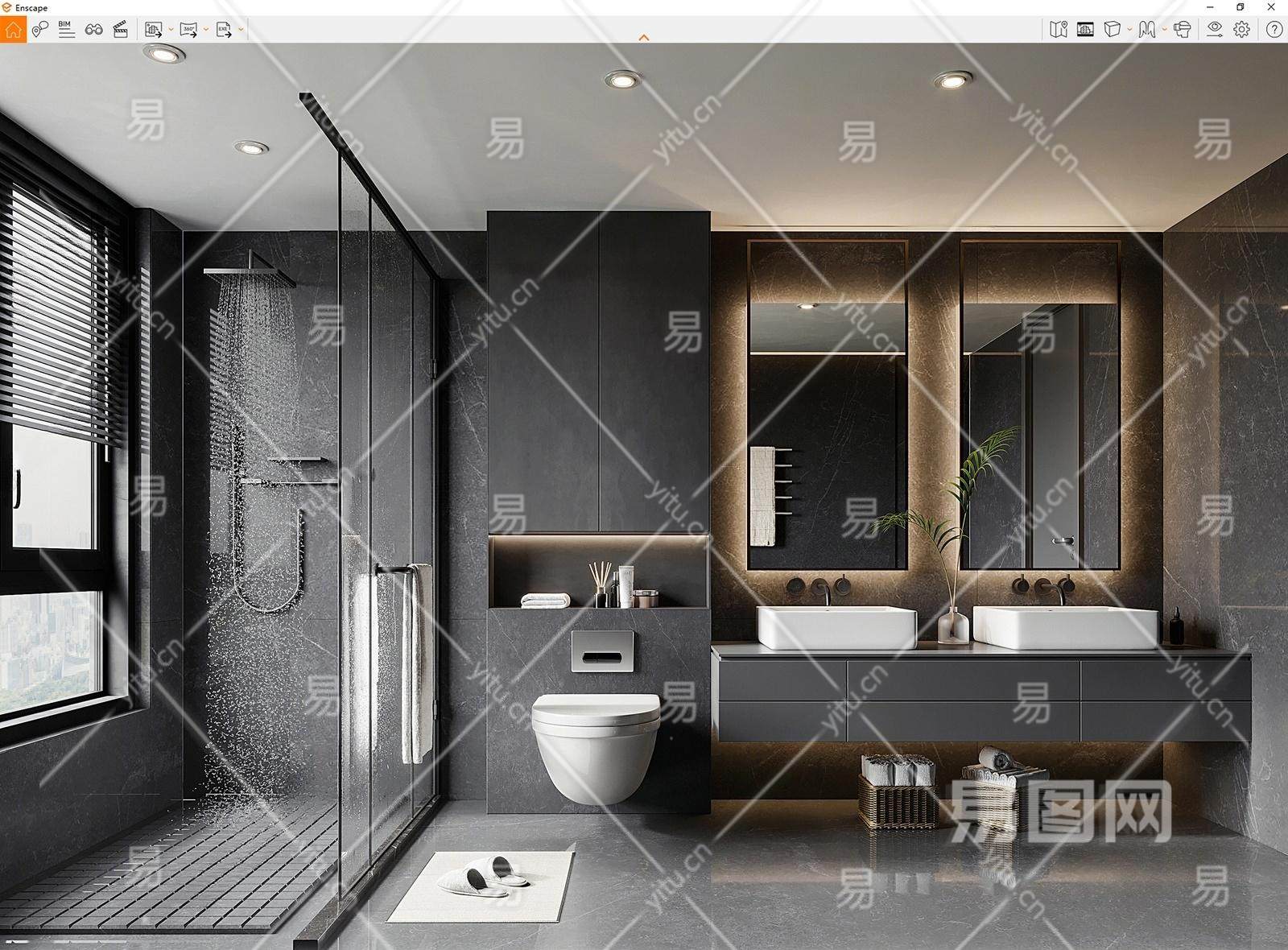 现代卫生间 卫浴镜 卫浴柜 洗手台盆 洗手台 淋浴间 浴室用品 洗护用品