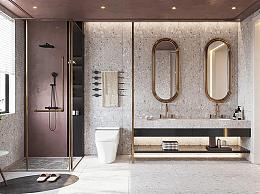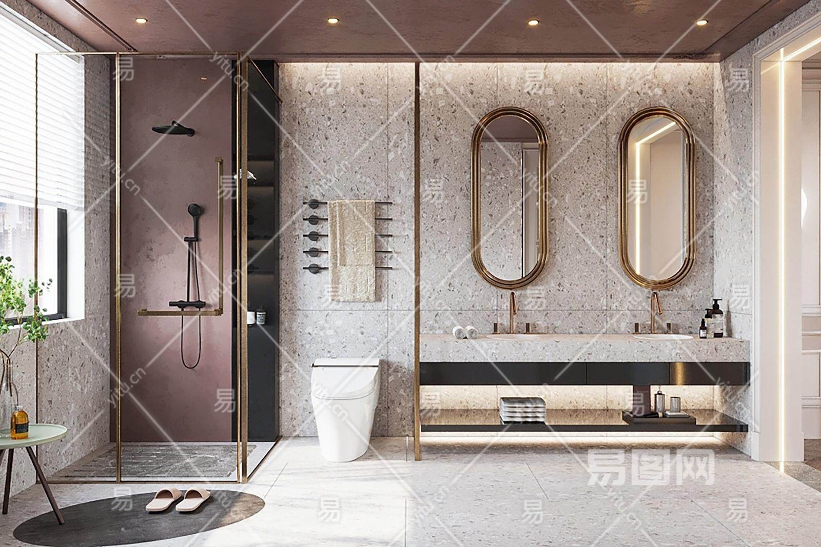 现代卫生间 洗手台 台盆 花洒 毛巾架 马桶
