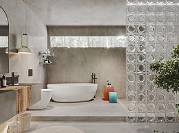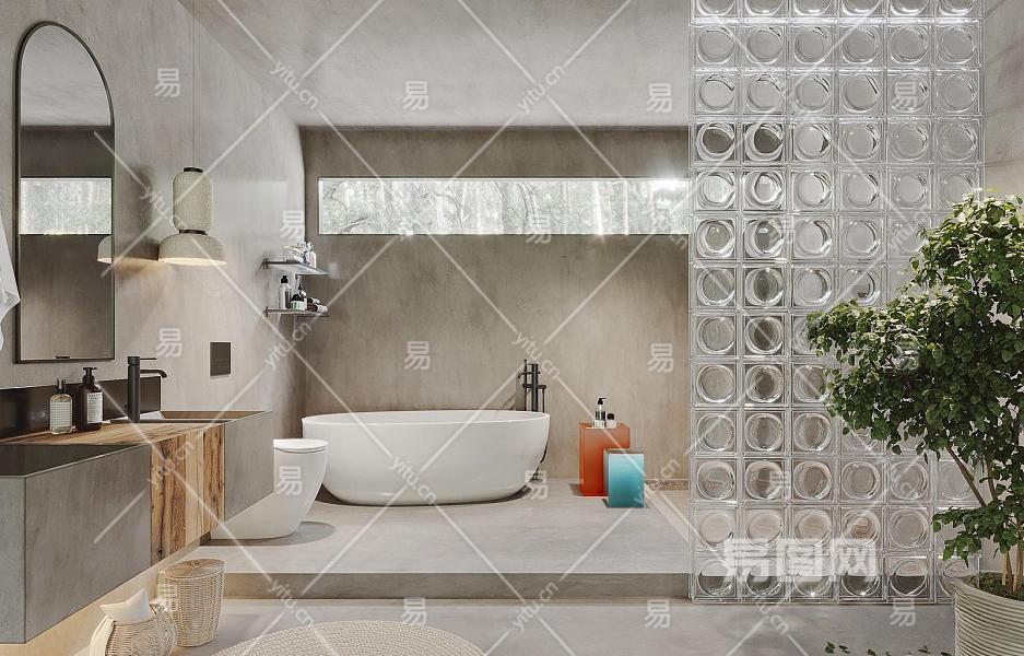 侘寂卫生间 卫浴 吊灯 浴缸 马桶 洗手台 浴室柜 盆栽 地毯