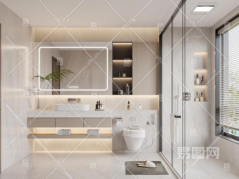 现代卫生间 卫浴柜 马桶 淋浴房 镜柜