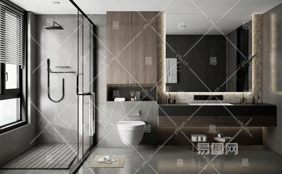 现代卫生间 卫浴镜 卫浴柜 洗手台盆 洗手台 淋浴间 浴室用品 洗护用品