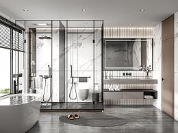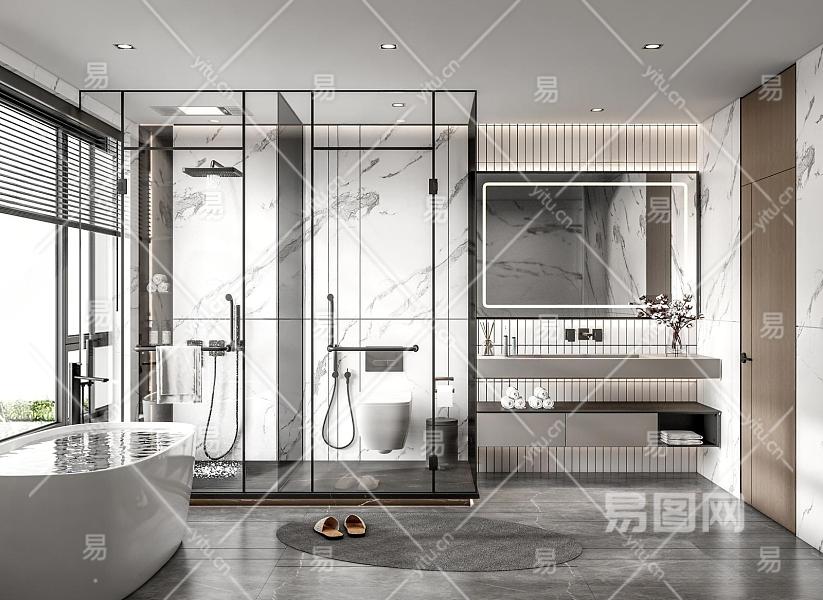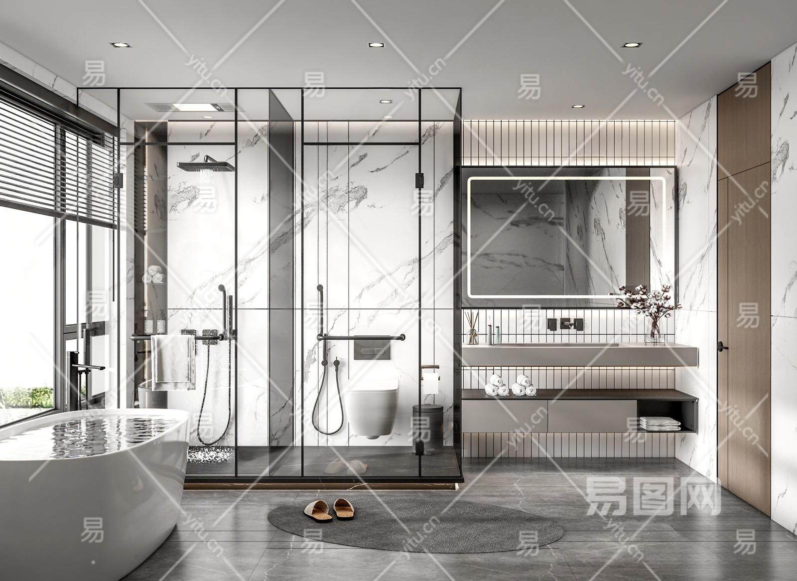 现代卫生间 台盆柜 镜子 坐便器 马桶 淋浴房花洒 浴缸 镜子