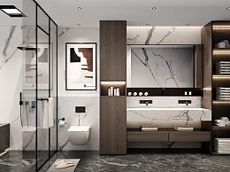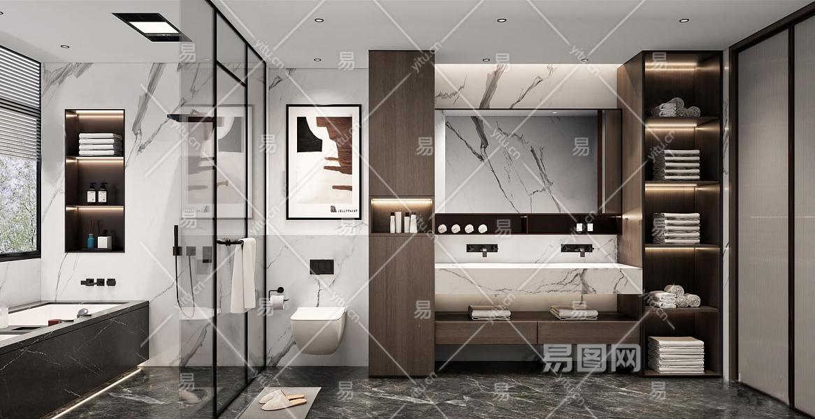 现代卫生间 台盆柜 镜子 毛巾架 马桶 淋浴房