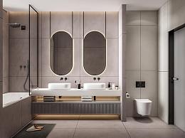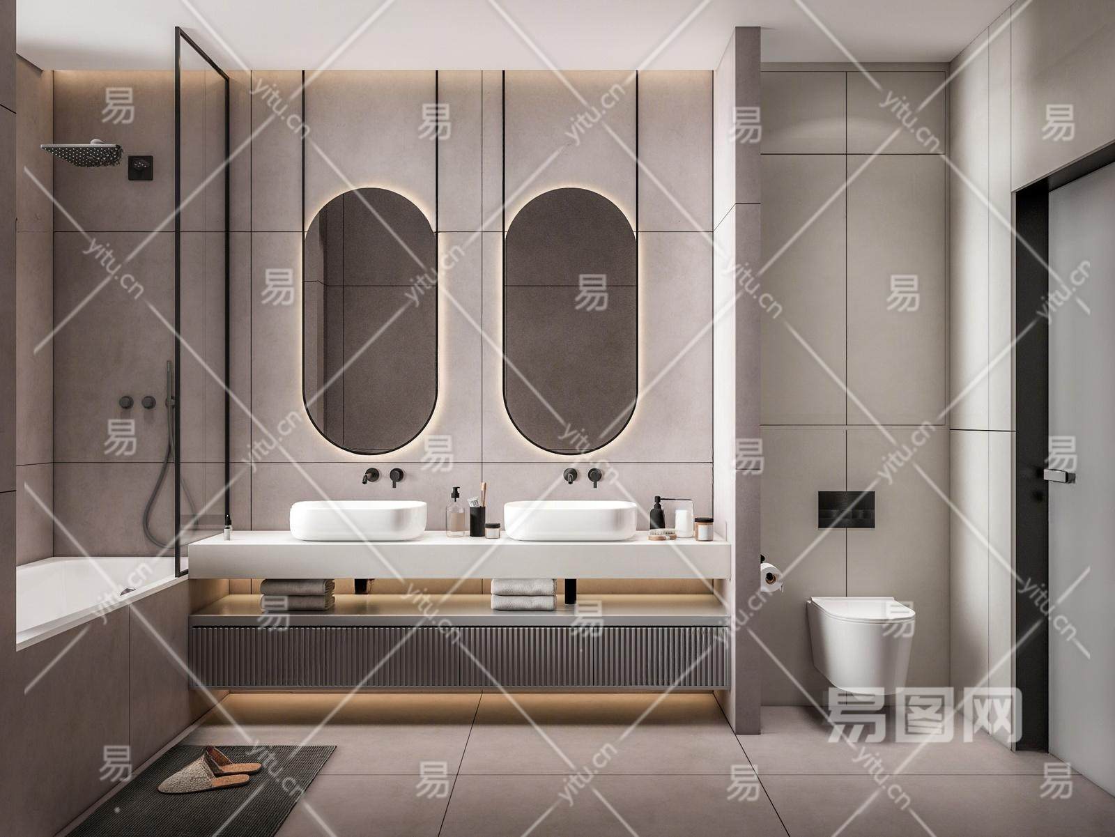 现代卫生间 台盆柜 镜子 浴缸 马桶