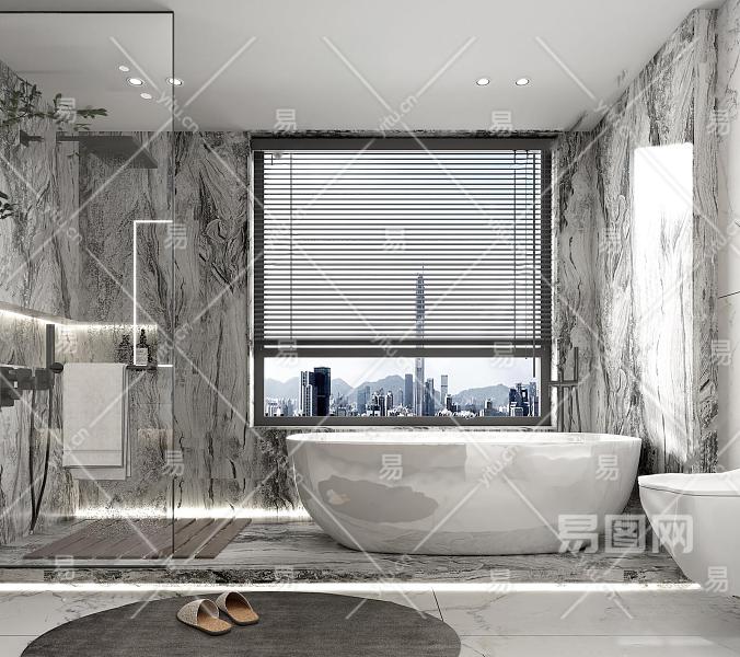 现代卫生间 台盆柜 马桶 毛巾架 淋浴房 花洒