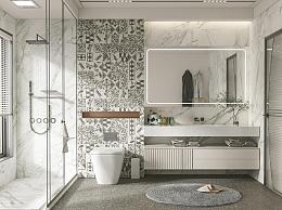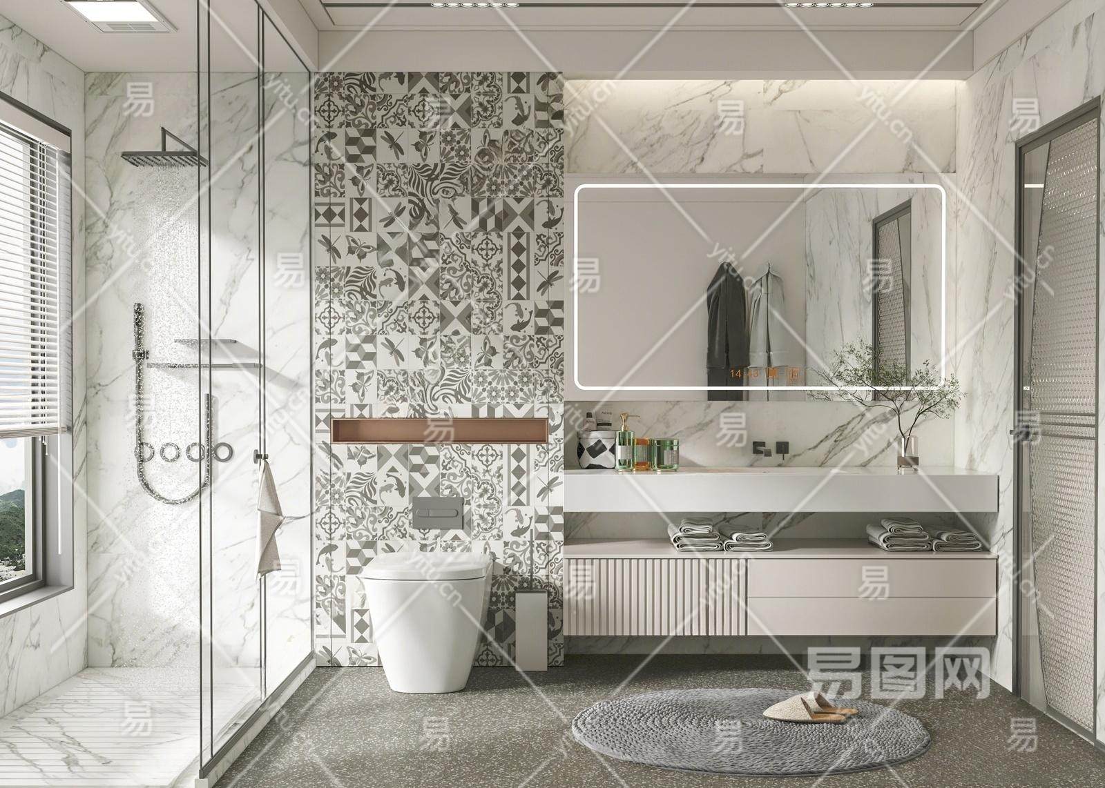 现代卫生间 沐浴房 花洒 坐便器 浴室柜 卫浴小件