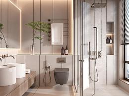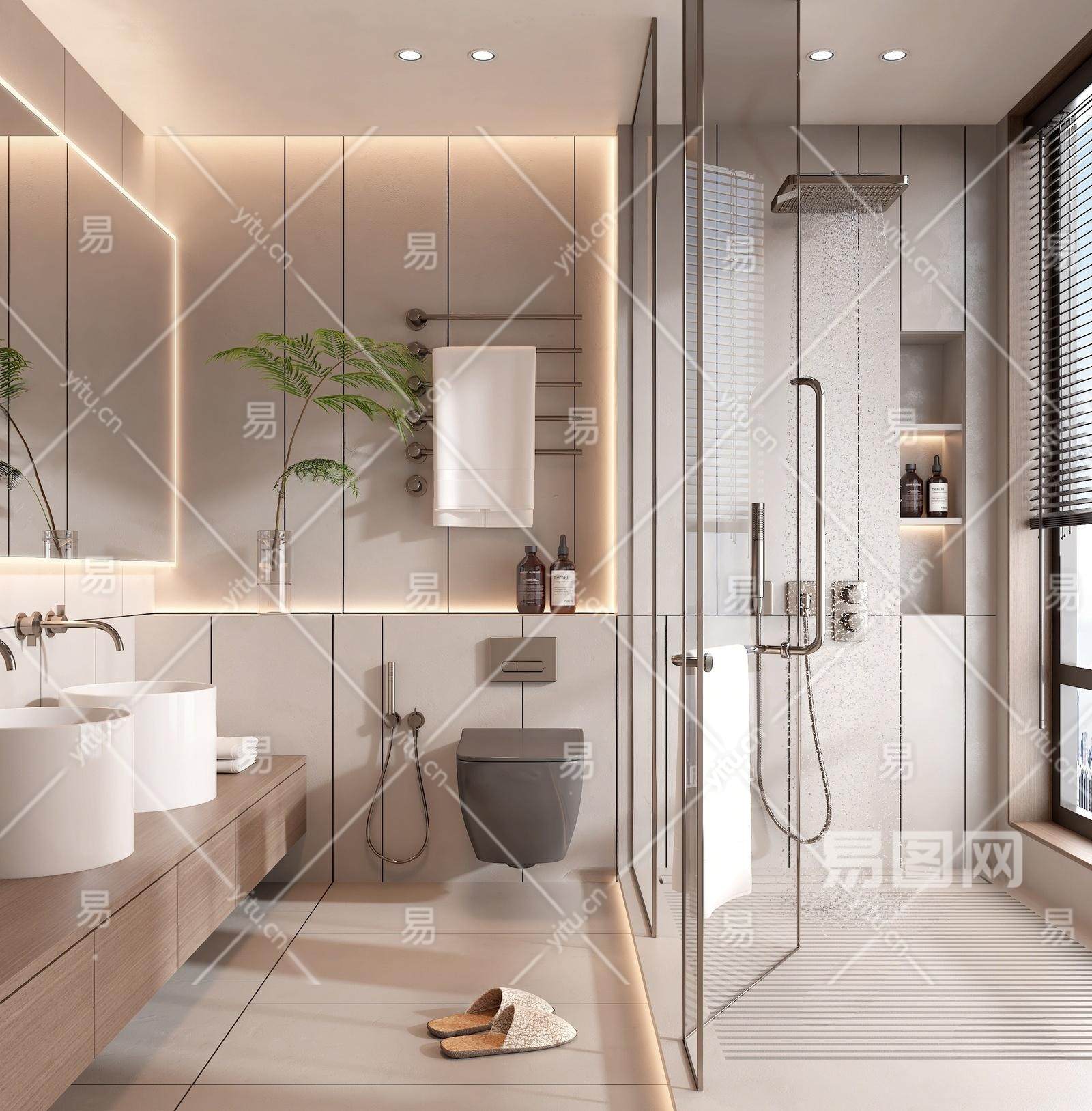 现代卫生间 淋浴房 浴室柜 马桶 毛巾架 龙头花洒