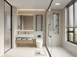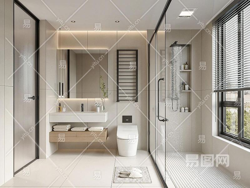 现代卫生间 马桶 浴室柜 镜子 花洒
