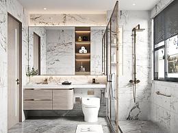 现代家居卫生间 卫浴柜 淋浴间 镜子 马桶 花洒
