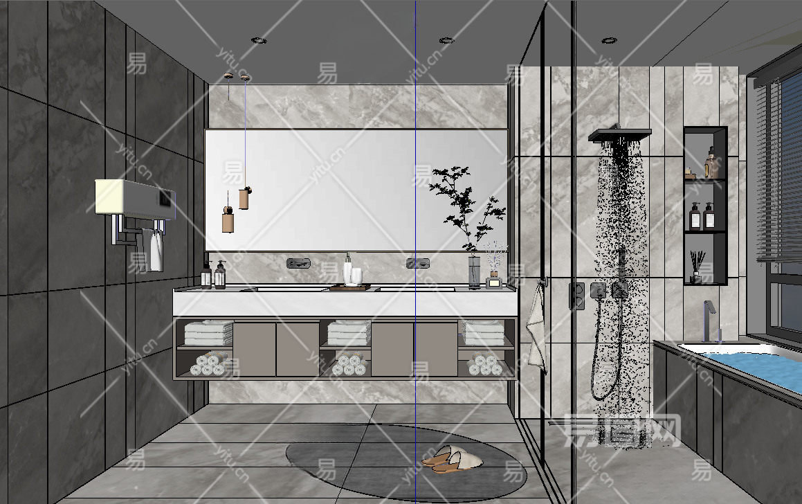 当前的位置:首页 > sketchup > sketchup模型 > 家装 > 卫浴 > 现代家居卫生间 台盆柜 花洒 毛巾架 植物 浴缸