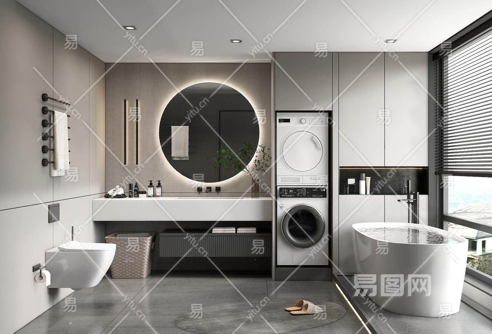 现代卫生间 洗手台 水龙头 浴缸