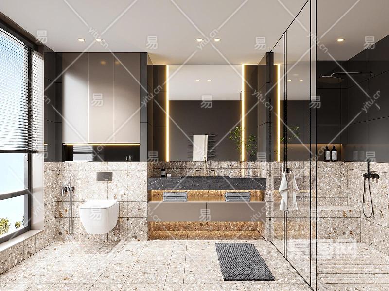 现代卫生间 浴室 洗手台 挂壁马桶 台盆 花洒 卫生间用品