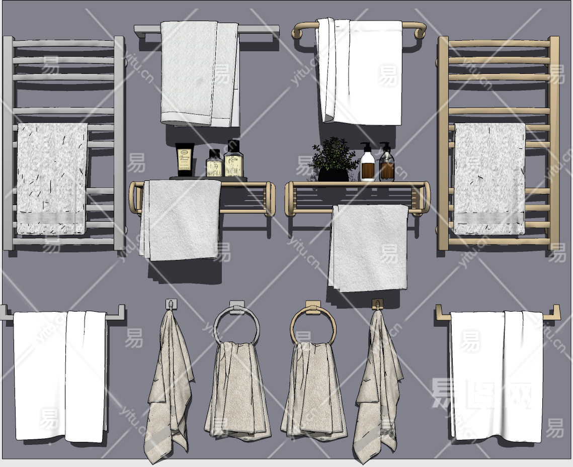 当前的位置:首页 > sketchup > sketchup模型 > 厨卫用品 > 卫浴小件 > 卫浴用品,浴巾架毛巾浴巾,洗漱用品
