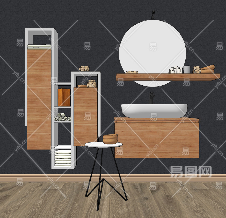 现代浴室柜组合,台盆,浴室柜su草图模型下载