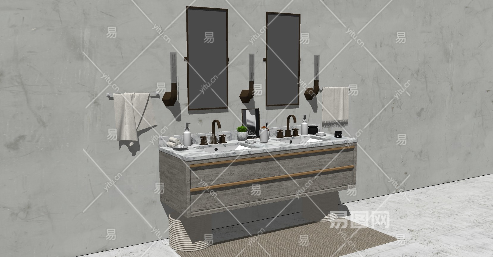 18北欧现代民宿洗手台现代壁灯镜子麻绳手巾浴用品SketchUpsu草图模型下载