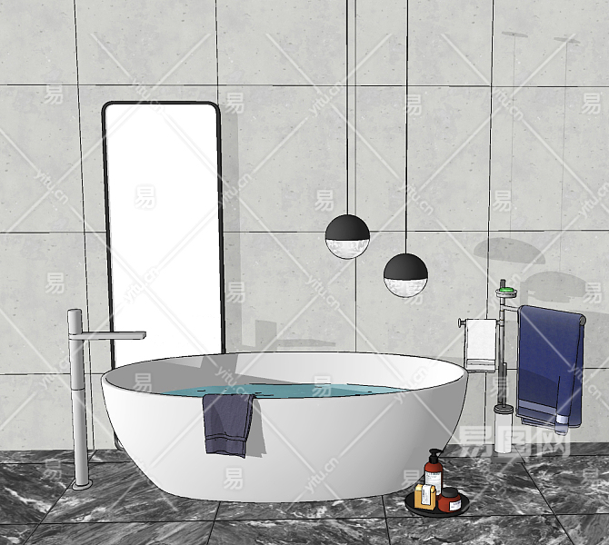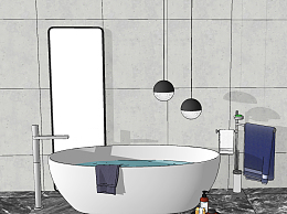 现代简易外漏浴缸,洗浴用品su草图模型下载