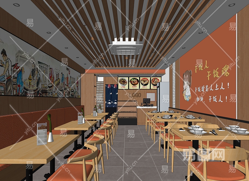现代快餐厅SU模型下载