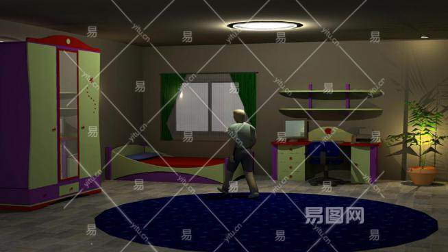 宜家孩子卧室SU模型下载_sketchup草图大师SKP模型