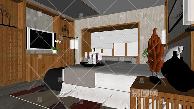 新中式古典卧室sketchup模型下载_sketchup草图大师SKP模型