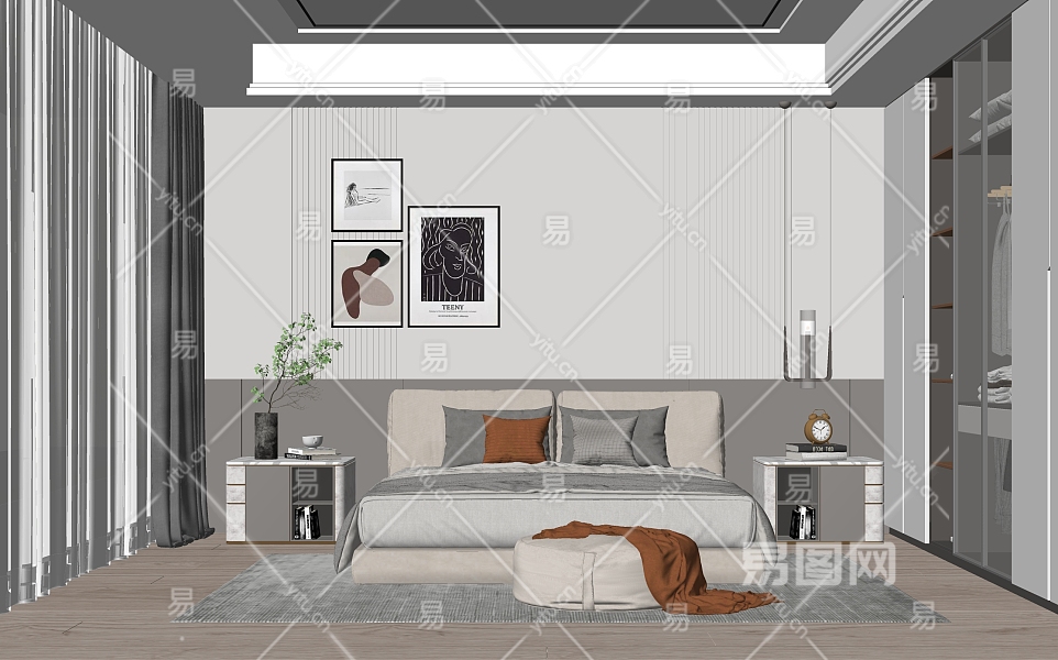 现代家居卧室SU模型下载