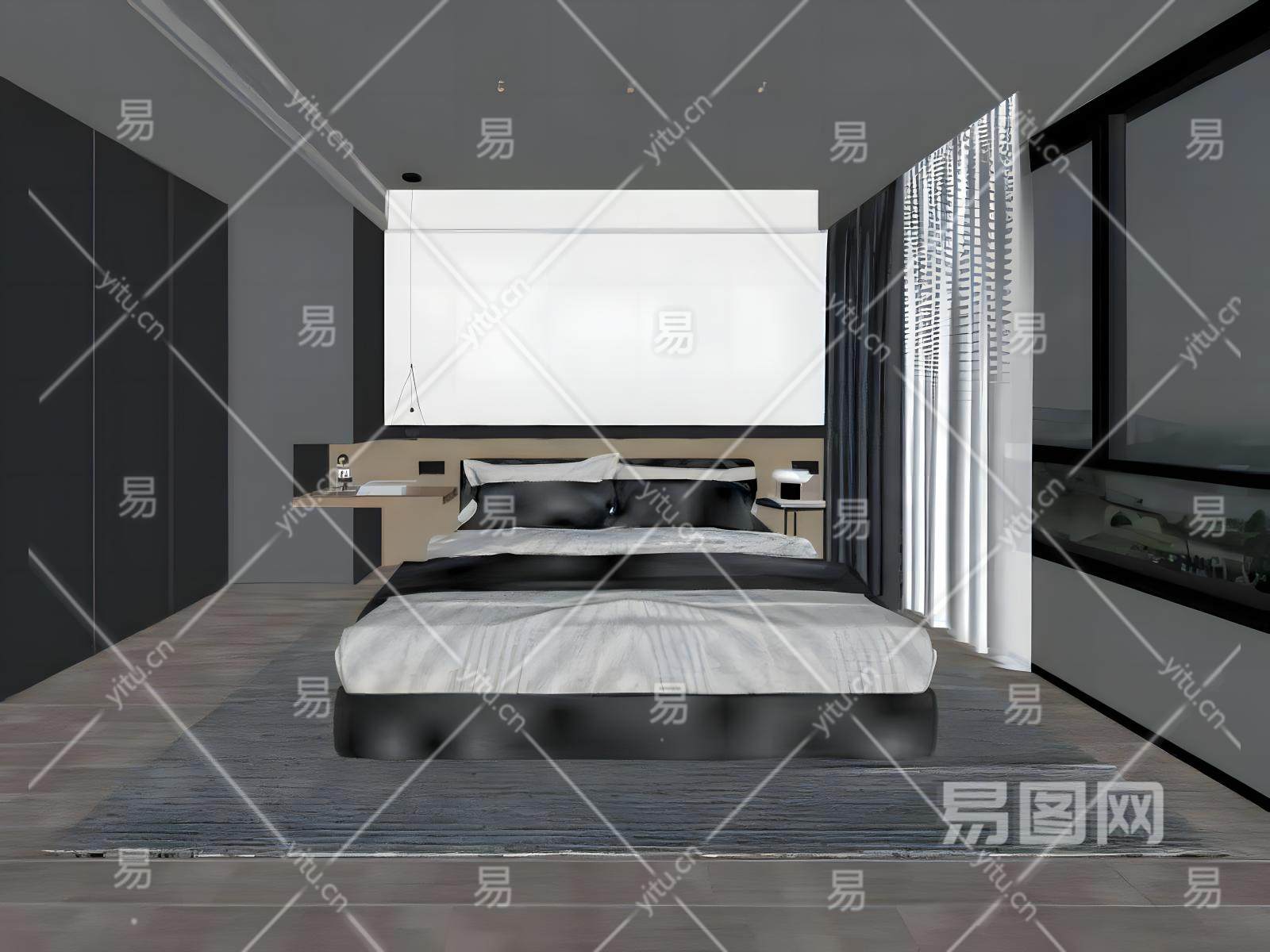现代黑白风卧室