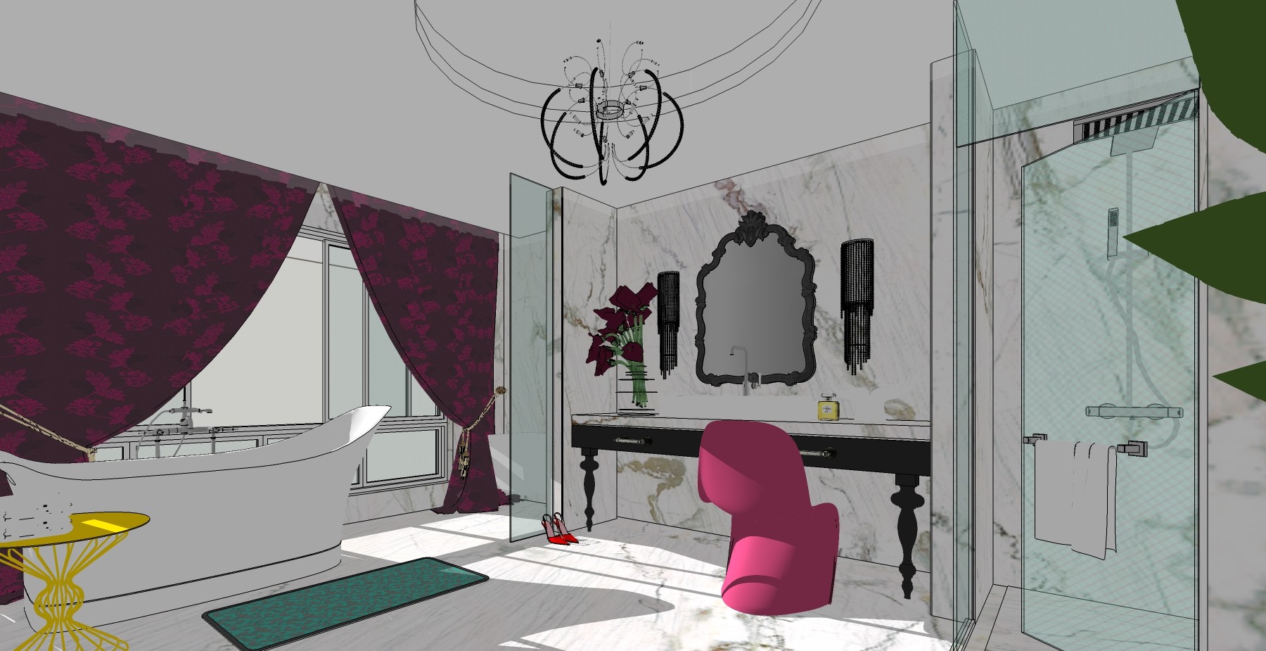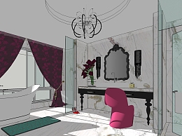 装饰主义浴室su模型,浴室浴缸窗帘梳妆台组合skb文件下载