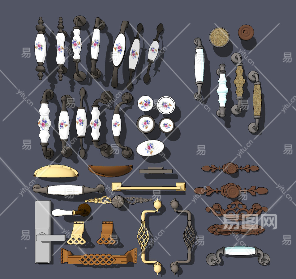 欧式拉手把手组合,su草图模型下载