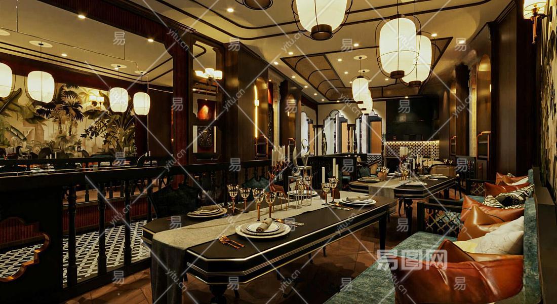 古典西餐厅 西餐厅餐桌椅 室内灯笼