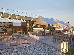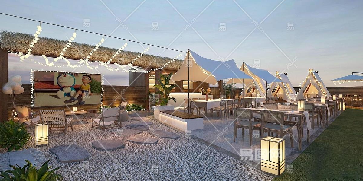 现代户外露营风西餐厅 露营帐篷 露营风户外桌椅 露营基地