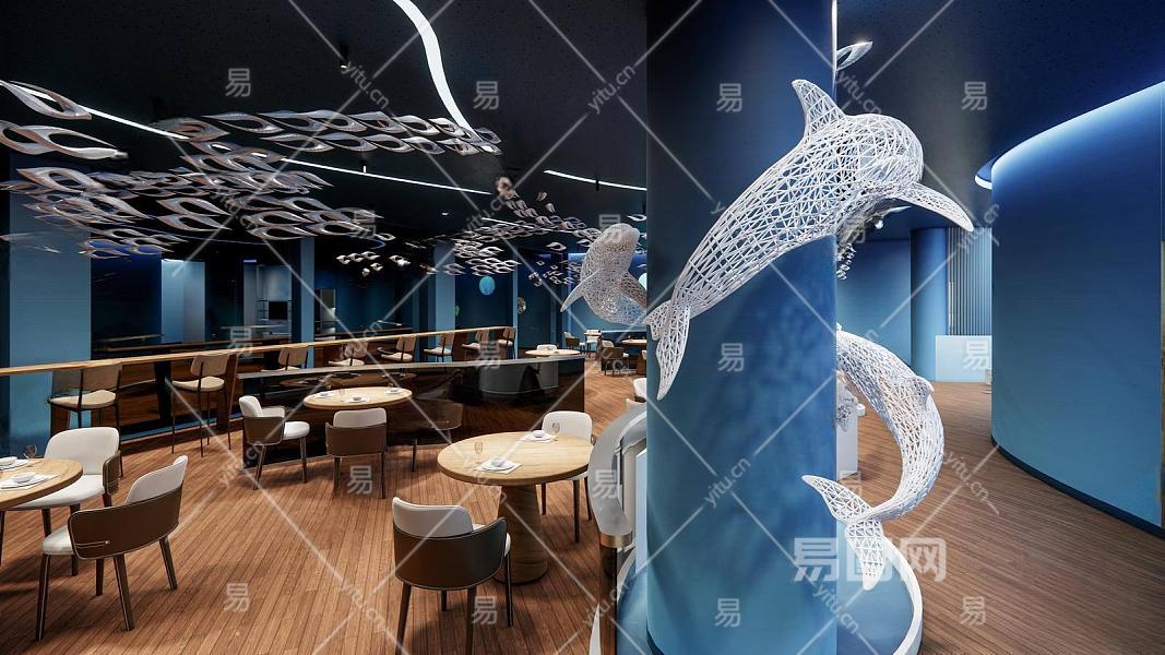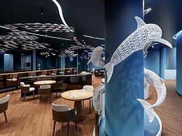 现代海洋主题西餐厅 吧台 儿童娱乐区